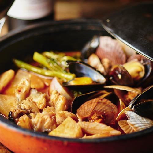 「白身魚のトロ」とも呼ばれるほど濃く深い旨味を持ち、甘く柔らかい身を持ち合わせる「地金目鯛」をアクアパッツァにしました。アクアパッツァはブイヨンを使用せず素材の旨味で勝負する料理!旨味が溶け出したスープは絶品です♪上品でクセのない味わいをぜひバゲットと一緒にお召し上がりください!